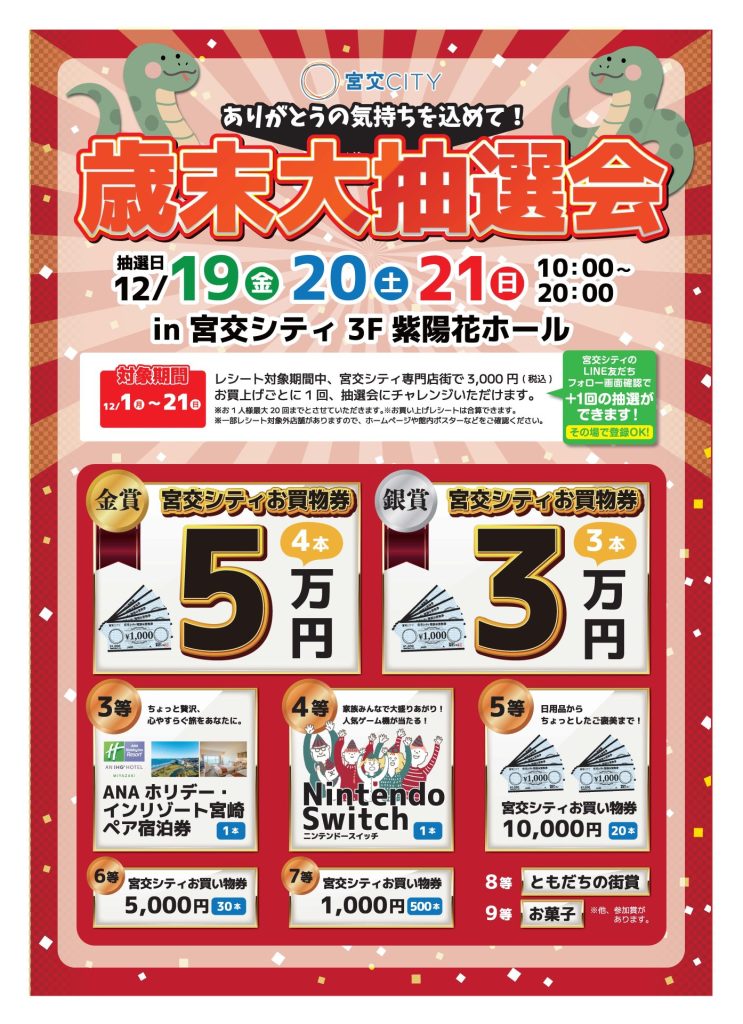 12月19日㈮・20日㈯・21日㈰「歳末大抽選会開催!!」