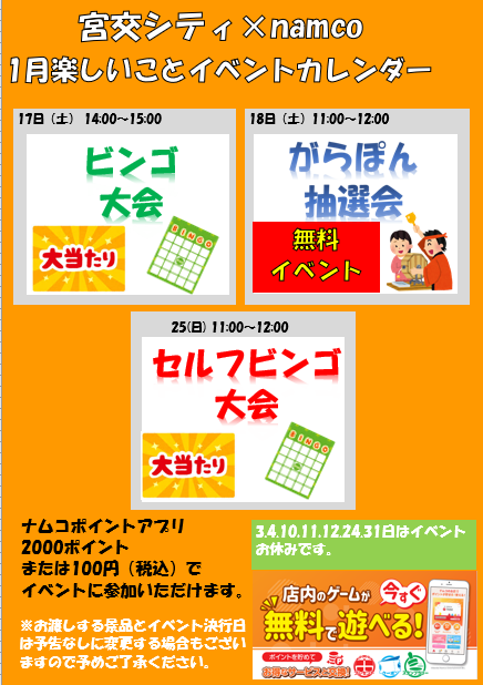 1月の宮交シティイベント&わくわくがいっぱいの週末イベント情報!!