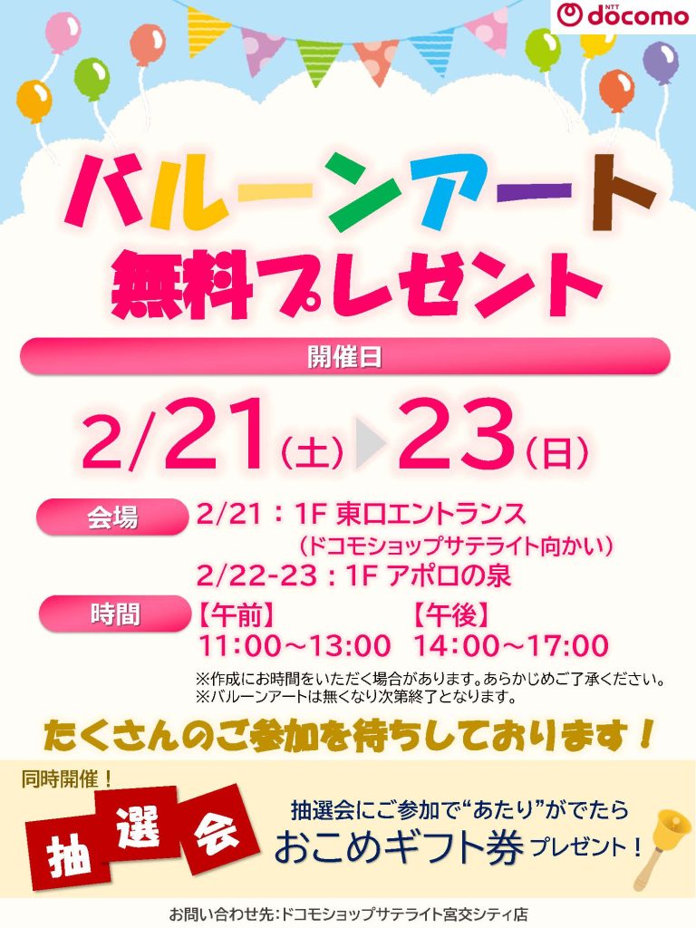 2月21日㈯~23日㈷「docomoイベントにてバルーンアート無料プレゼント開催!!」