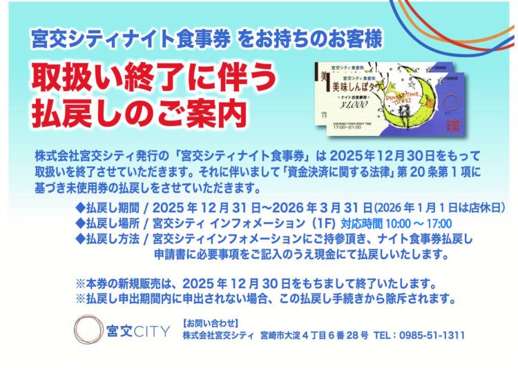宮交シティナイト食事券をお持ちのお客様へ