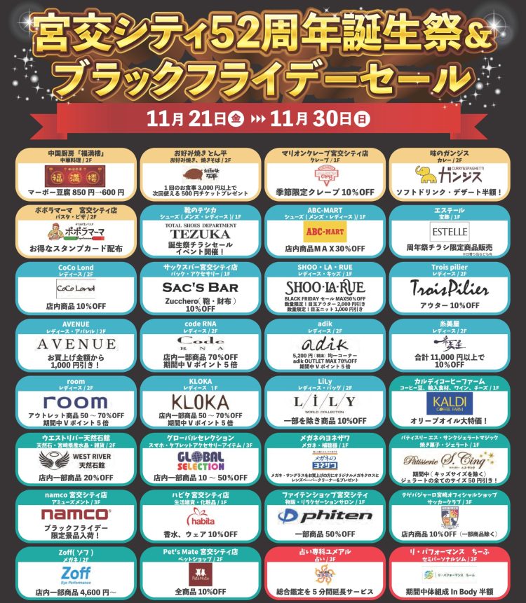 宮交シティ52周年誕生祭&ブラックフライデーセール開催!!【全館あ…