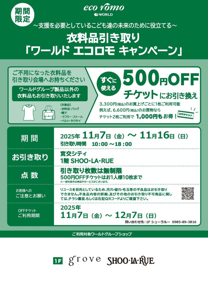 ♪♪衣料品引き取り「ワールド エコロモキャンペーン」【11月7日(金)~11月16日(日)】