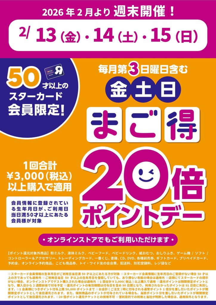 2階/トイザらス・ベビーザらス「2月の"まご得20倍ポイントデー"開催日」